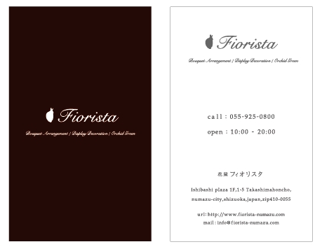 沼津市イシバシプラザ1階にあるお花屋さん「Fiorista」様のショップカードを